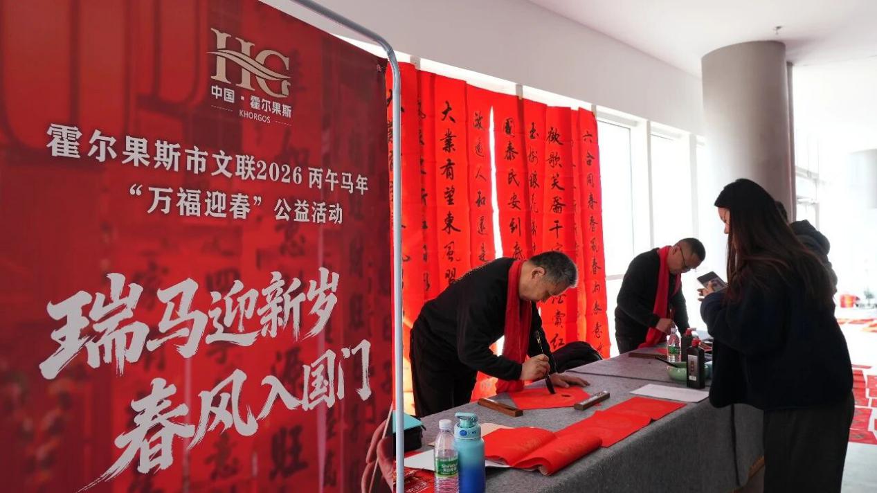 新春将至,年味渐浓。为弘扬中华优秀传统文化,铸牢中华民族共同体意识,营造喜庆祥和的节日氛围,1月30日,霍尔果斯市文学艺术界联合会以“瑞马迎新岁,春风入国门”为主题,在新时代文明实践中心举办2026丙午马年“万福迎春”公益活动,以书写春联、赠送“福”字等形式,向市民群众传递新春祝福,送上浓浓关怀。