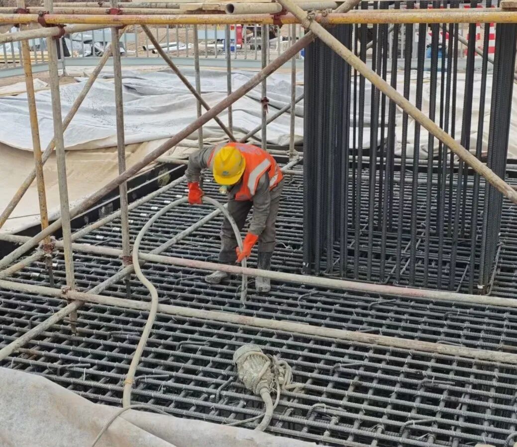 面对冬季施工环境复杂、有效作业时间短、安全质量风险高的挑战,项目部坚持前瞻谋划、统筹推进。2025年年末,项目部召开冬季施工专题会议,结合工程总进度与当地气候特点,明确施工重点、技术措施、物资保障及应急预案,确保各项工作有章可循。同时,成立以项目经理为组长的冬季施工领导小组,提前盘点储备足量防寒保暖物资、混凝土外加剂、保温覆盖材料等,与供应商建立应急联动机制,保障“粮草”充足,确保低温环境下正常运转。