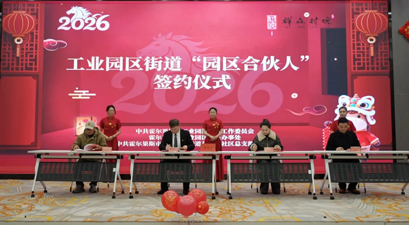 活动中,街道对2025年度为辖区发展作出突出贡献的“最美人大代表”“最美政协委员”“最美企业合伙人”“最美蓝领合伙人”“最美党员合伙人”等先进典型进行集中表扬。霍尔果斯国药天目湖生物科技有限公司、新疆同疆共创国际贸易有限责任公司、霍尔果斯环迪暖通科技有限公司与工业园区街道签订了“园区合伙人”合作协议。
