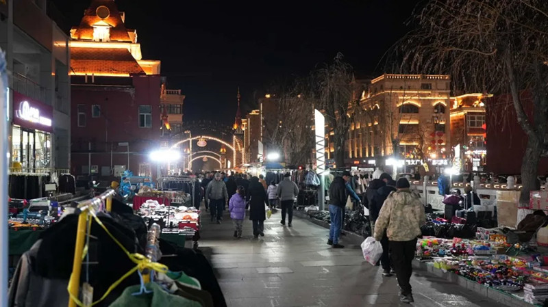2月3日晚,霍尔果斯友谊路步行街灯火璀璨,人潮涌动,特色美食的香味、摊主热情的吆喝声和中外游客的欢笑声,交织成一幅充满活力的夜间消费图景。