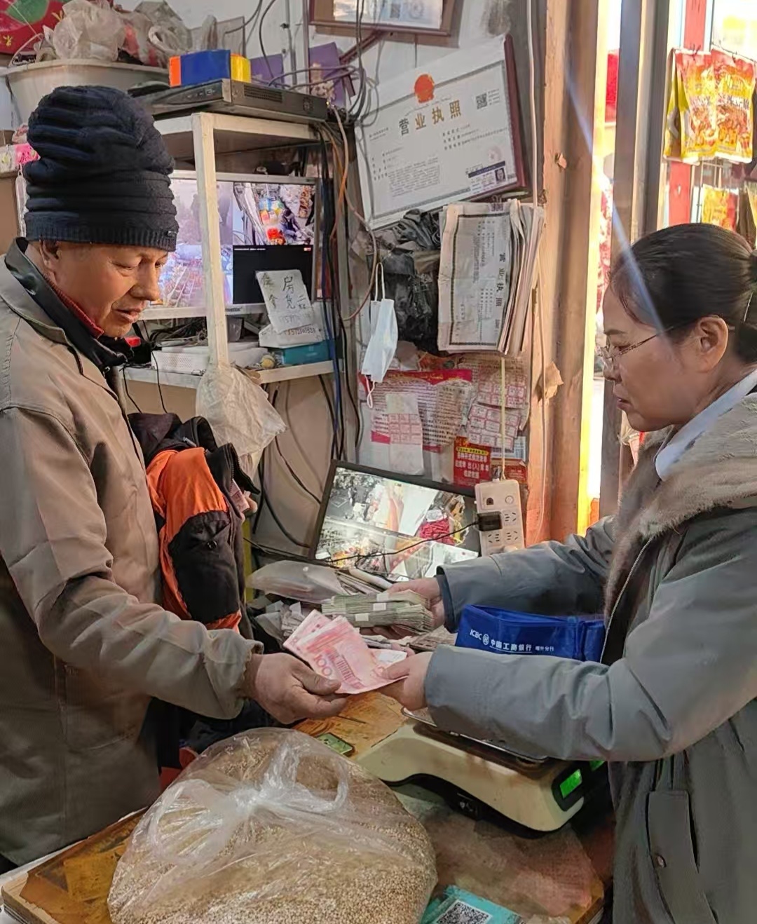 支行员工活跃于各个店铺,无论是水果干果店、药店,还是各类生活用品小店,都能看到他们贴心服务的身影。每到一处,员工们都耐心细致地解答商户疑问,确保零钱兑换工作准确高效。商户们纷纷对工商银行的暖心举措给予高度肯定和赞扬。