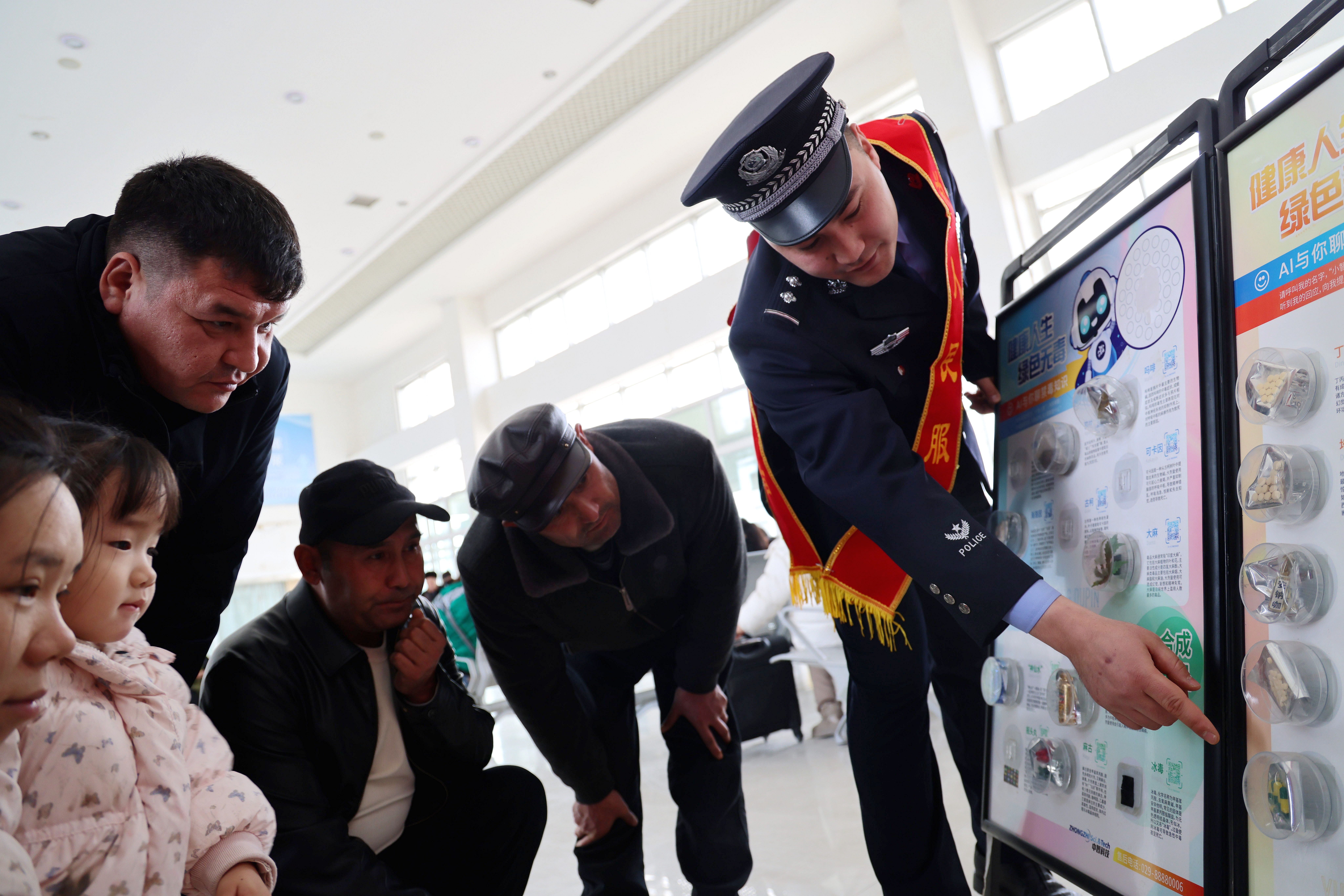近期,喀什铁路公安处英吉沙站派出所民警联合车站客运工作人员,紧扣“安全”与“服务”两大主题,围绕易发的违法行为和常见的电信诈骗、毒品伪装方式,在火车站候车室组织开展了一场别开生面的普法宣传活动。