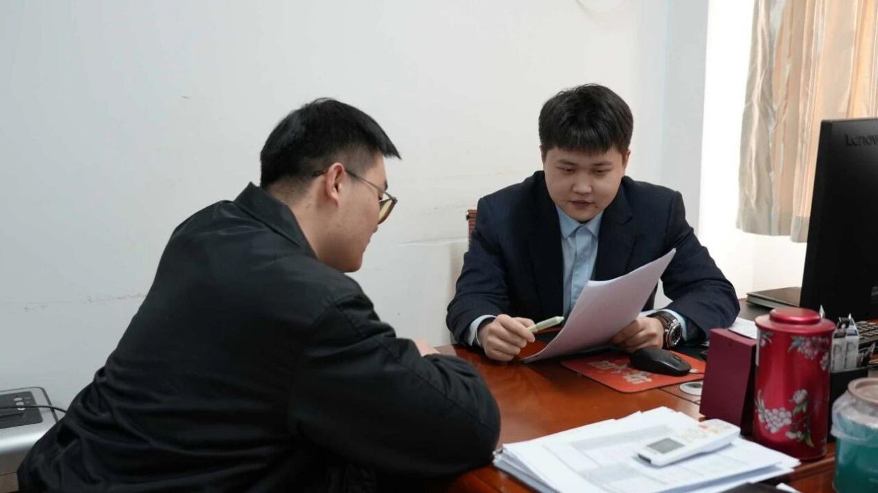 (许程正在为客户办理跨境人民币项目前期贷款业务)