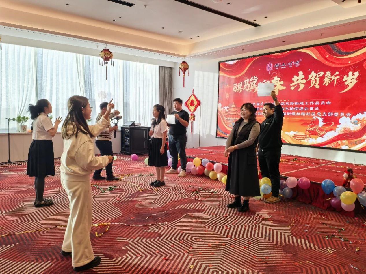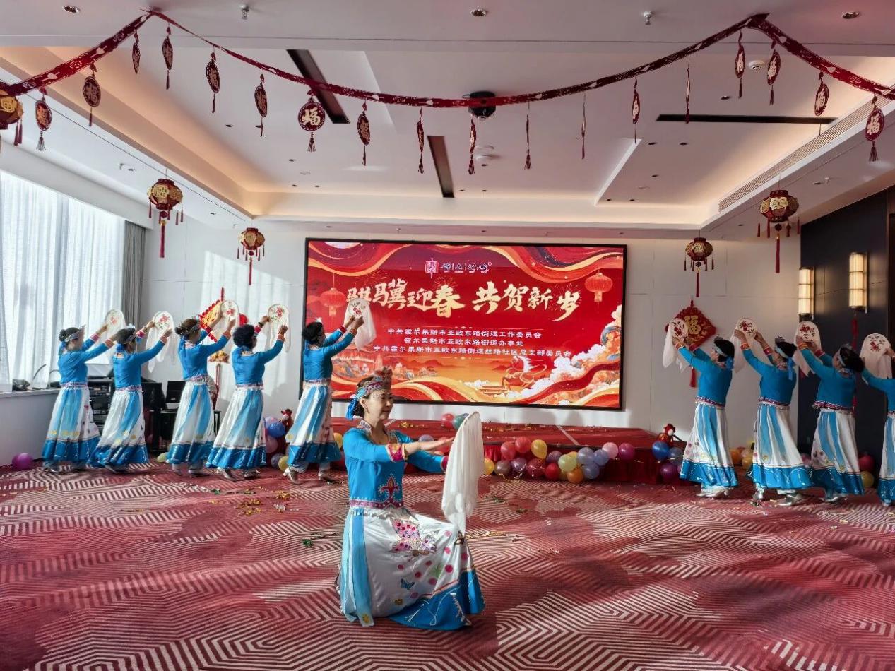 为庆祝2026丙午马年的到来,营造喜庆祥和、团结奋进的浓厚节日氛围,霍尔果斯市亚欧东路街道举办了“骐骥迎春 共贺新岁”群众村晚。街道干部职工、社区工作者、共建单位代表与居民欢聚一堂,以歌传情、以舞助兴,共迎新春佳节,同绘发展愿景。