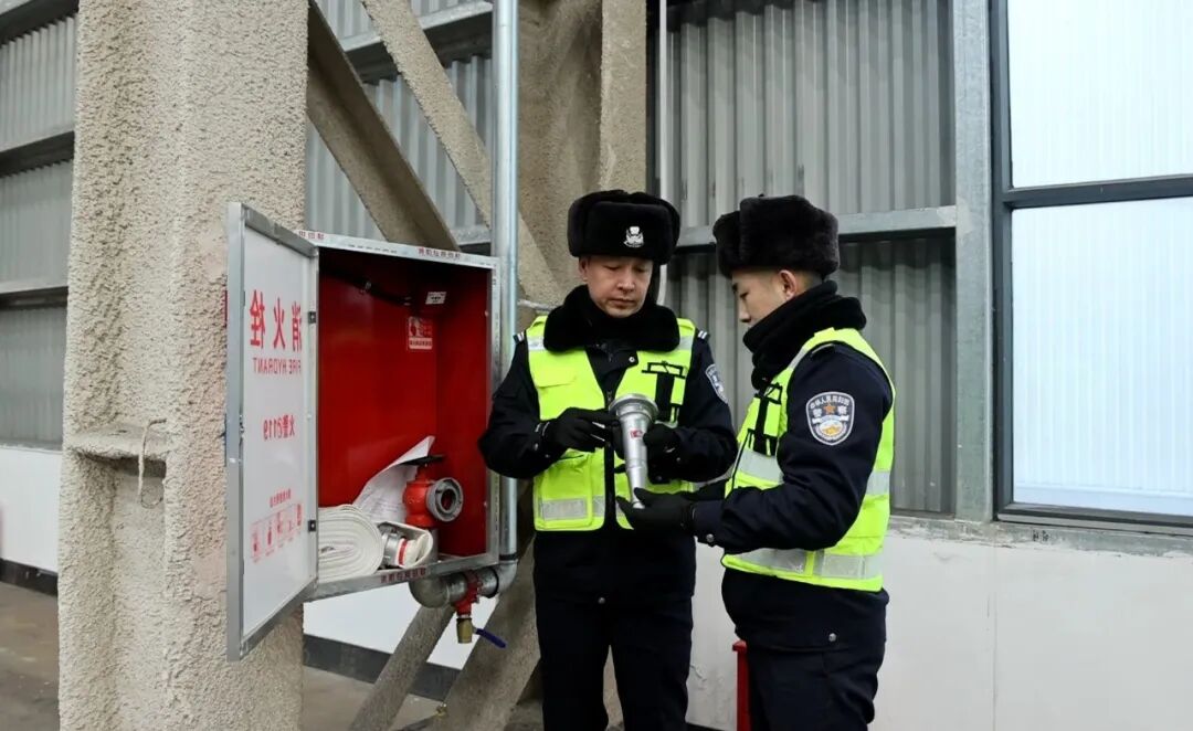 民警检查消防栓设备。格日乐图 摄