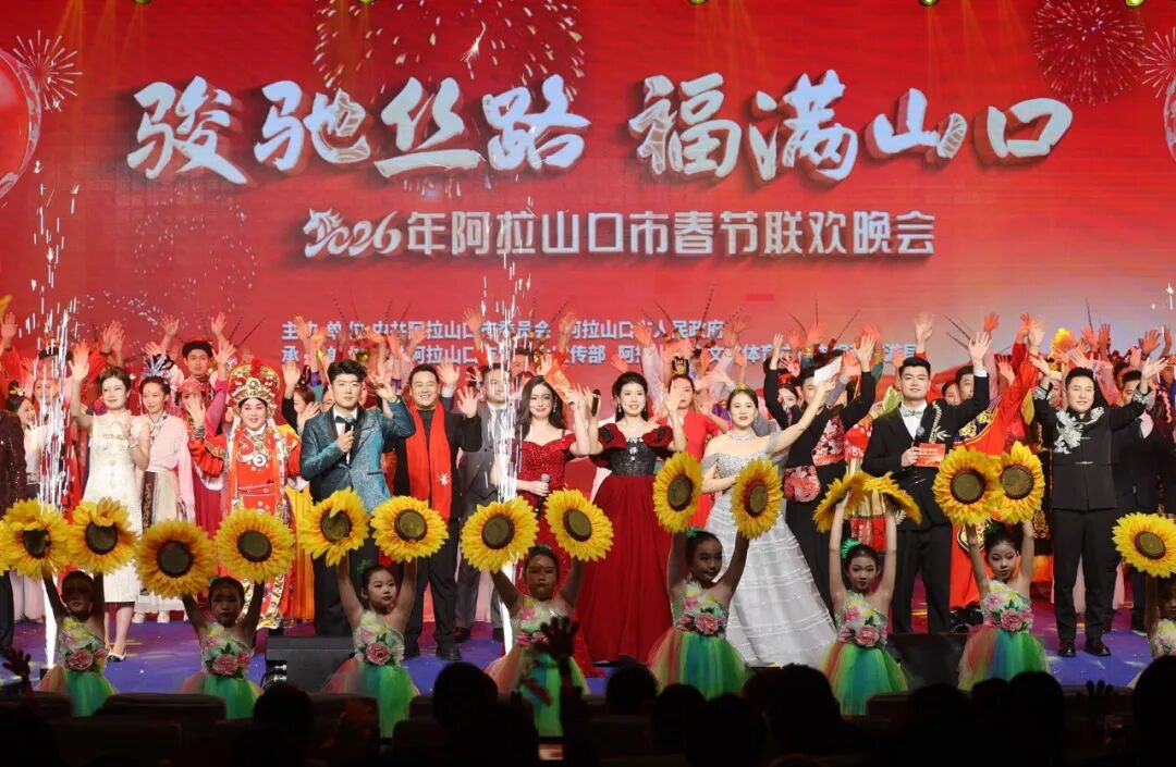 骏马启新程,边关庆新春。2月13日晚,阿拉山口中心多功能厅灯火璀璨、暖意融融、座无虚席,以“骏驰丝路 福满山口”为主题的2026年阿拉山口市春节联欢晚会如期开演。全市各族干部群众、驻阿官兵、援疆干部与社会各界嘉宾欢聚一堂,载歌载舞庆佳节,同心同德话发展,在欢歌笑语中回望“十四五”的铿锵足迹,在奋进旋律中奔赴“十五五”的壮阔征程。