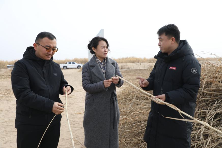 芦竹全身是宝,可作为纺织原料、饲料和生物质燃料,兼具生态和经济价值。看着收割的芦竹,高江荣格外自豪。她介绍,这些芦竹得到很好分蘖,根系也已扩散到周边2平方米内,有很好的固沙效果。今年冬天,他们还给这些芦竹根盖上了“土被子”,避免温度过低造成影响。而在十四团金杨镇的沙漠地带,新一轮的防沙治沙项目也已破土动工。