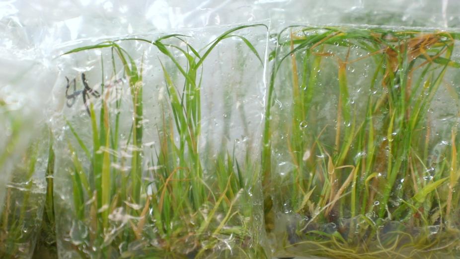 透明培养袋里的芦竹幼苗。郑亮 摄