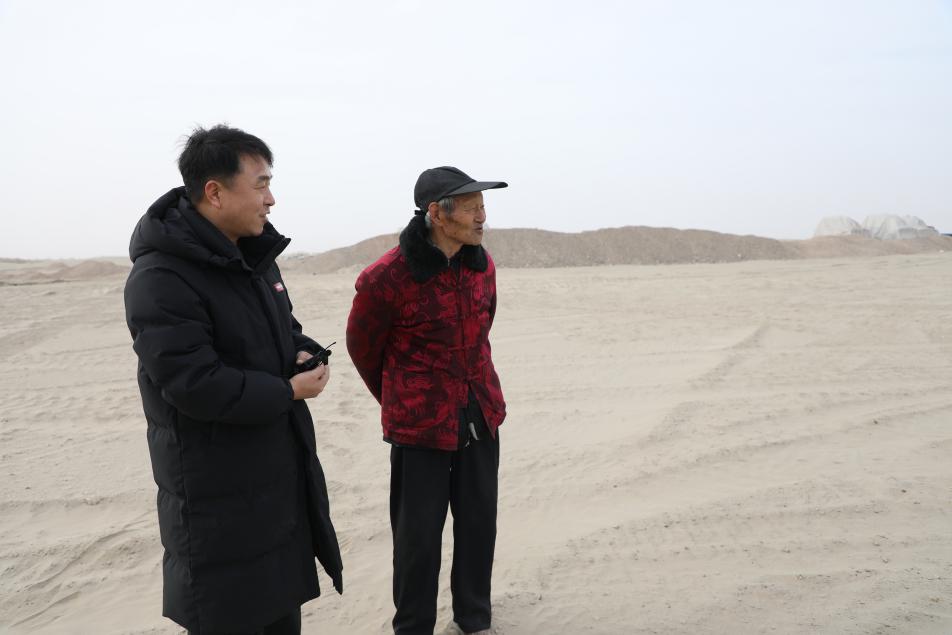 高松龙(右一)看着这片正在被治理的土地,感叹变化巨大。郑亮 摄