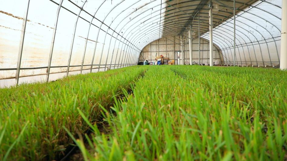 在十团昌安镇的大棚内,芦竹幼苗长势良好。郑亮 摄