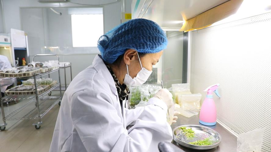 在新疆两山生态治理有限责任公司芦竹育苗组培基地内,育苗技术员和接种工人忙碌不停。“我们目前的这个根系,相对来说已经算是技术很成熟了。”组培室负责人林熬介绍,这些芦竹幼苗的部分母体来自海南菌草中心,80%则来自当地,他和同事每天要经过几十次的监测,将污染率控制在5%以内,才可以保证芦竹苗的成活率。
