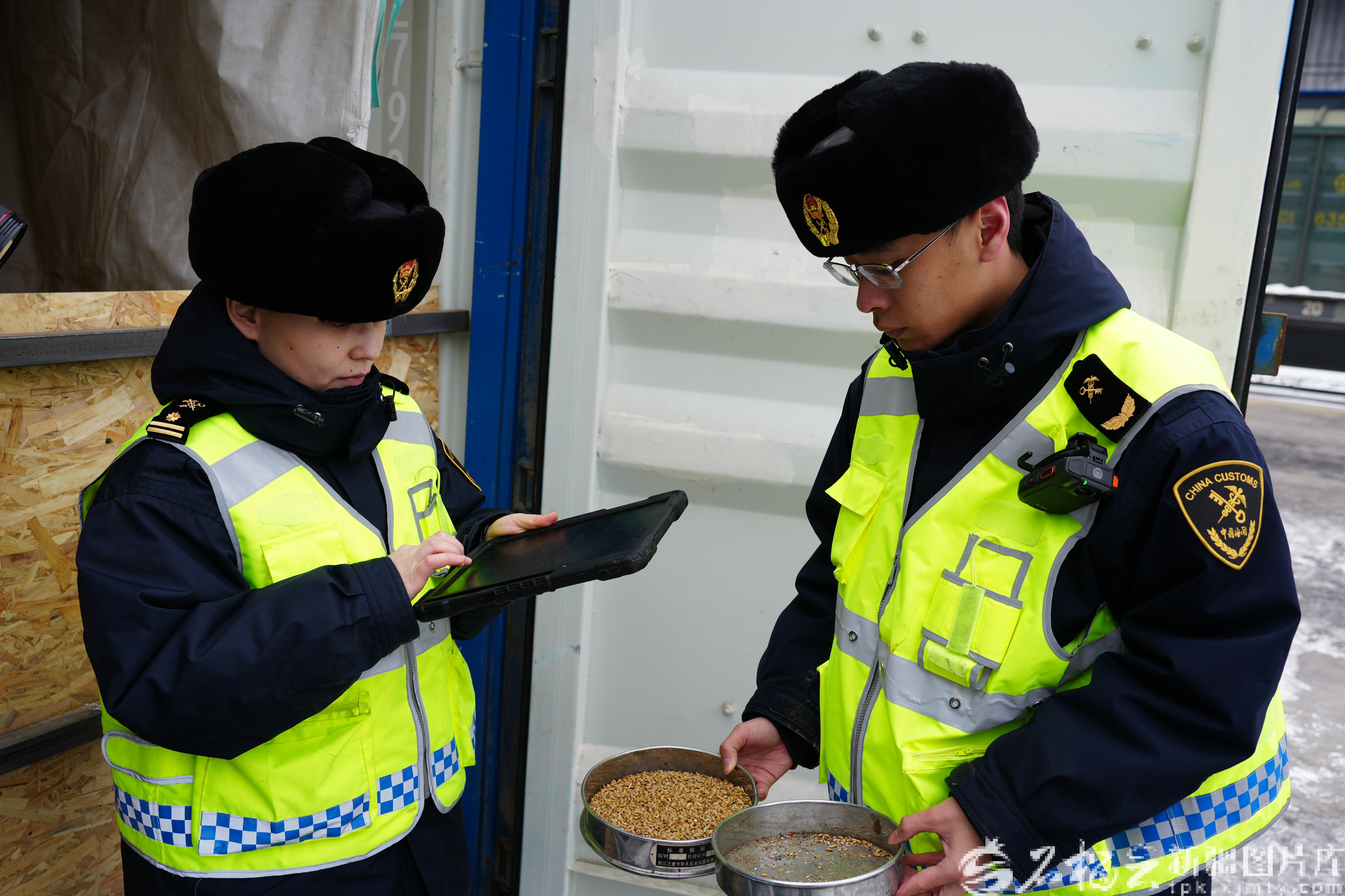 业务大厅内,海关关员端坐工位,指尖在键盘上快速敲击,和办理业务的企业工作人员认真核对进出口单证,对企业提出的咨询仔细回复。在查验一线,阿拉山口海关查检三科科长牟锟早早抵达岗位,一边细致叮嘱年轻关员检查单兵查验设备,一边通过业务系统,仔细查看当日入境矿产品的查验清单。