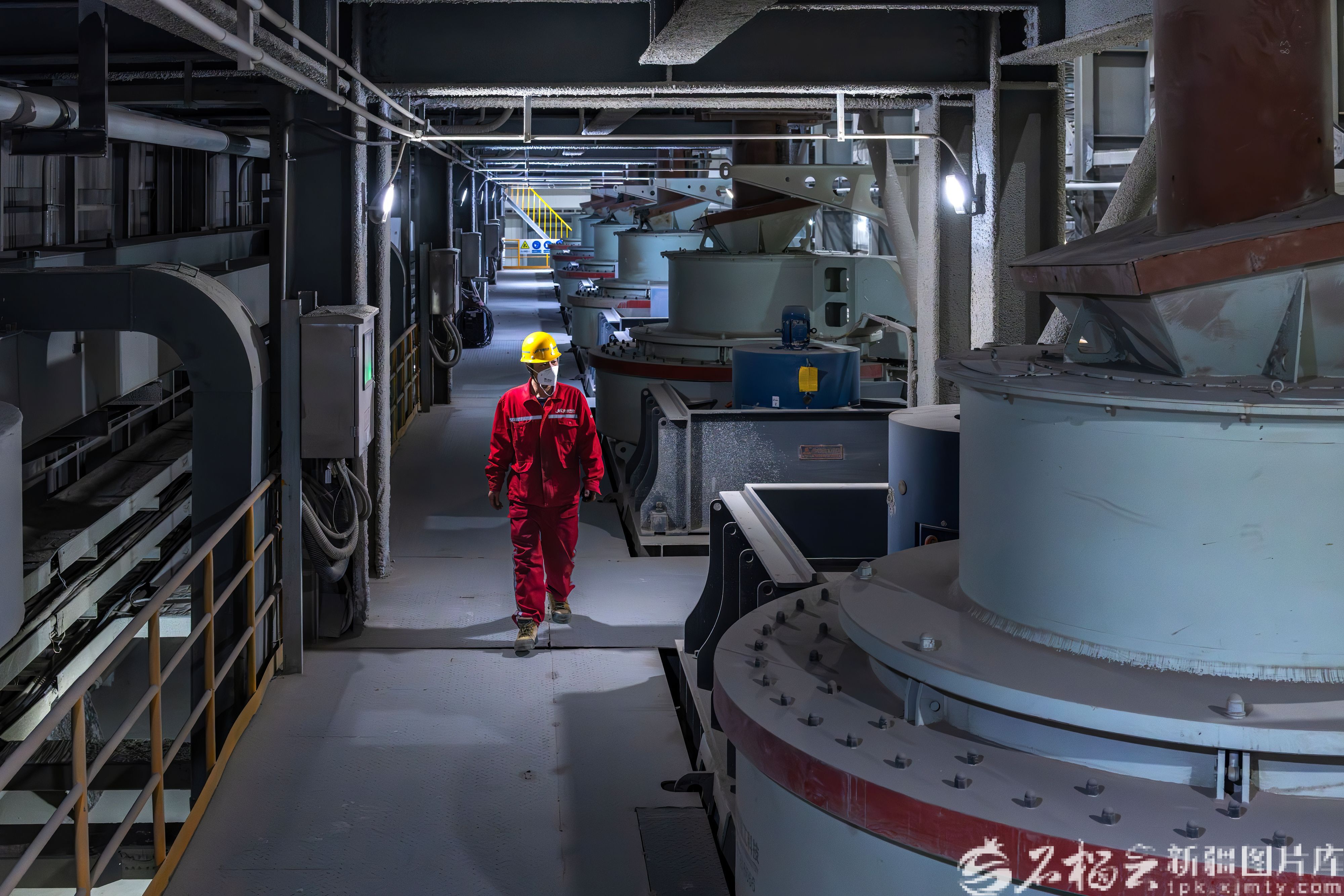新疆和田大红柳滩稀有金属矿开发建设项目选矿厂内工作人员在巡检。贾新农 摄