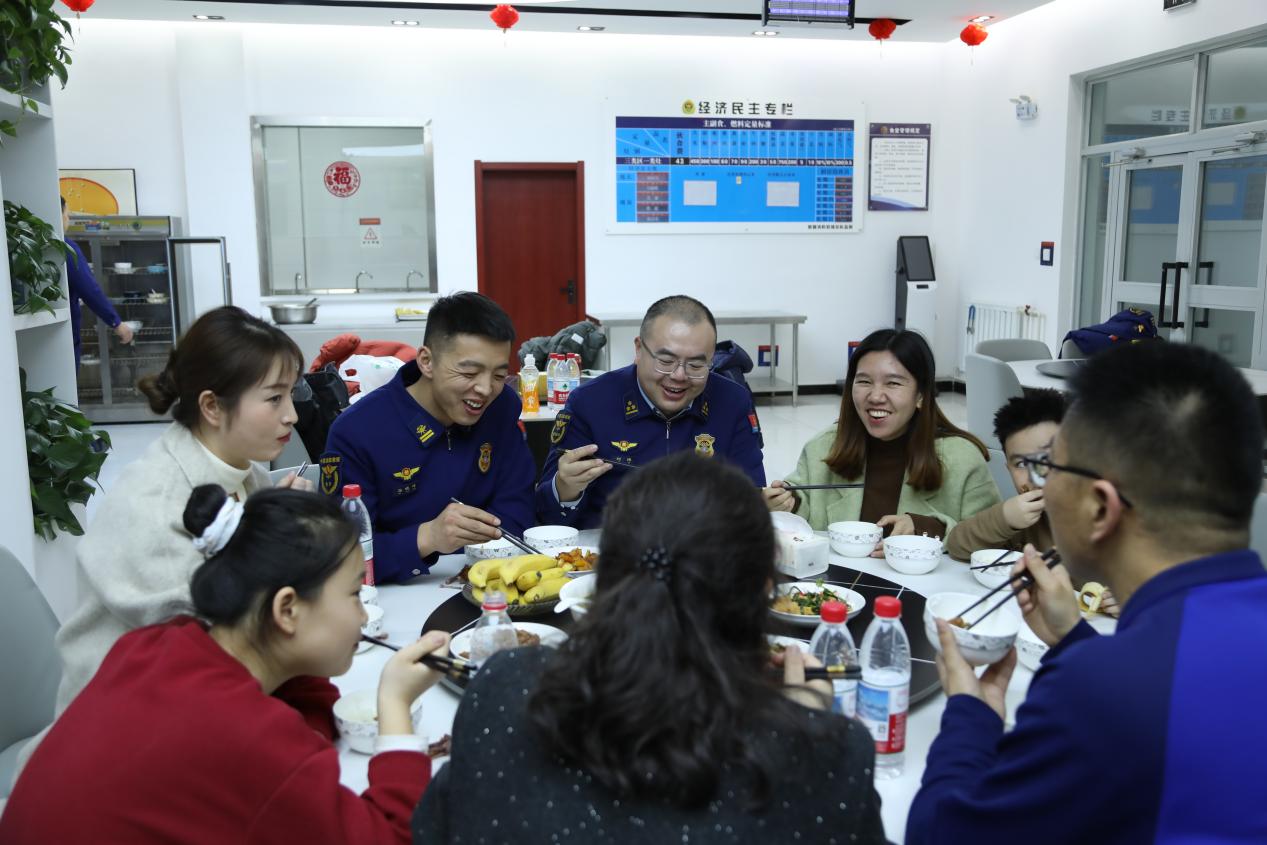 消防指战员与家属一起吃年夜饭。贾雪娇 摄