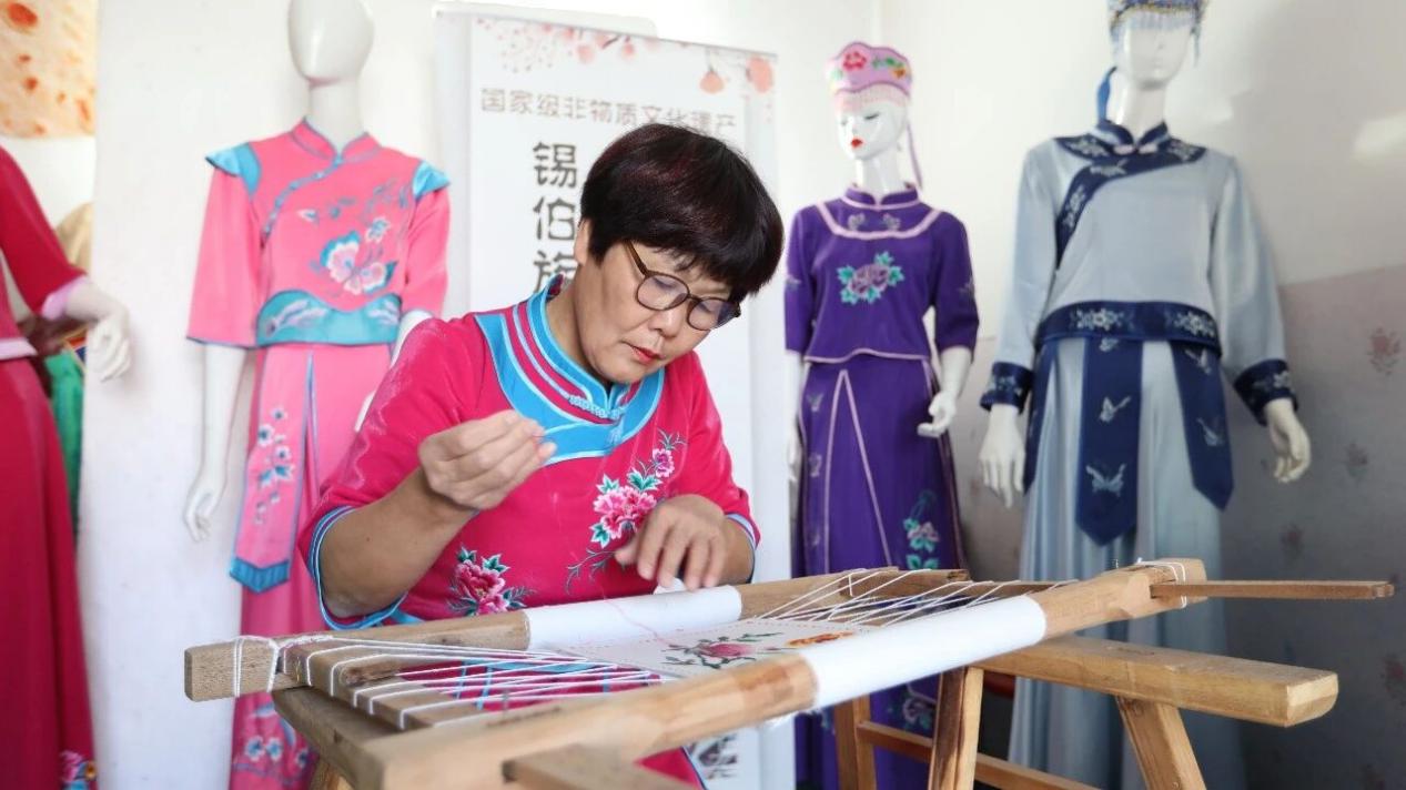 非物质文化遗产代表性传承人郭小荣的转型之路是援疆项目促进文化交融的生动缩影。在参与江苏援伊·苏州工作组组织的“苏韵伊情·圆融同心”文化交流年非遗交流活动后,郭小荣受到启发,借鉴苏绣精细的针法与色彩搭配技巧,对锡伯族传统刺绣服饰制作工艺进行全面改进。工作组不仅为她搭建了与苏州非遗大师面对面交流的平台,还组织开展电商技能培训,帮助她掌握线上运营技巧。如今,郭小荣不仅熟练开设网店拓宽销售渠道,更实现了非遗技艺的市场化转化,2025年她制作的锡伯族传统刺绣服饰和演出服销售收入达到18万元。为带动更多群众增收,她还与3名锡伯族妇女合作,扩大生产规模,并积极吸纳当地残疾人就业,让非遗技艺成为带动各族群众共同致富的“金钥匙”,在传承民族文化的同时,进一步密切各民族之间的情感联结。