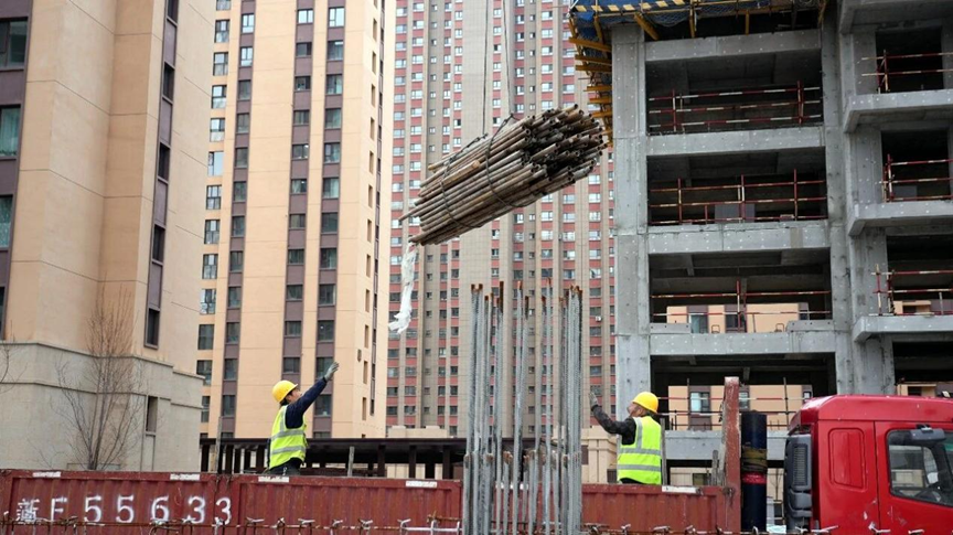 (工人正在运输建筑材料)