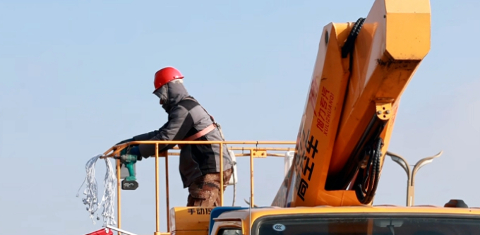 3月13日,记者在阿拉山口市友好路主干道看到,市政养护人员正操作登高作业车,对被强风撕裂、损坏的灯箱等进行集中更换。施工人员逐一拆除损坏设施,更换全新灯箱组件,并对支架结构进行加固处理,及时消除安全隐患。与此同时,城区主次干道及小区内的路灯杆、果皮箱、供排水管网、绿化苗木等受损设施的修复工作也在同步推进。
