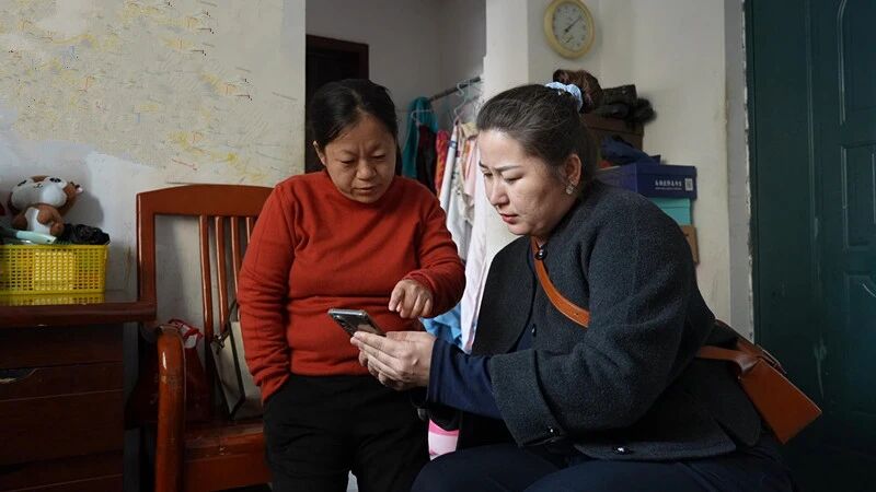 社区干部入户走访为群众宣传育儿补贴相关政策