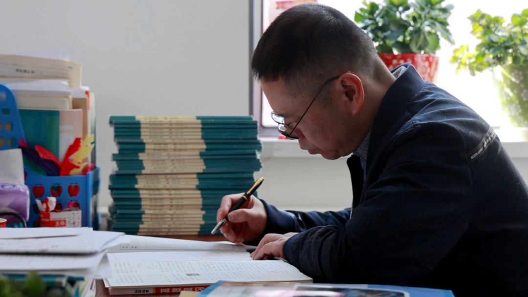 江平波正在批改学生作业。龙证宇 摄