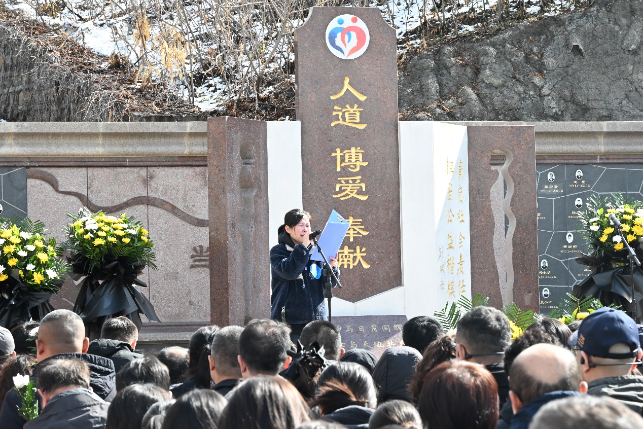 图为捐献者家属代表发言。