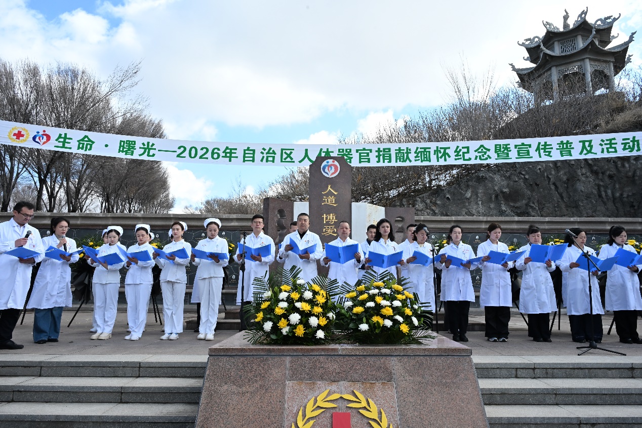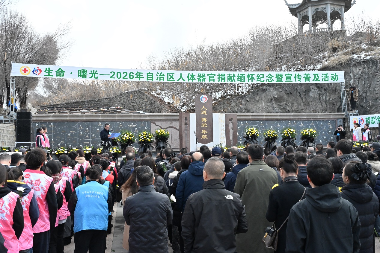 3月25日上午,由中国人体器官捐献管理中心指导,新疆维吾尔自治区红十字会主办的“生命·曙光”——2026年遗体和人体器官(眼角膜)捐献缅怀纪念暨宣传普及活动在乌鲁木齐市人体器官捐献纪念园举行。捐献者家属代表、移植受体代表、医务工作者、红十字志愿者及社会各界代表二百余人齐聚纪念碑前,以朴素而庄重的仪式,向那些在生命终点选择无私奉献的人体器官捐献者致以最深切的敬意。