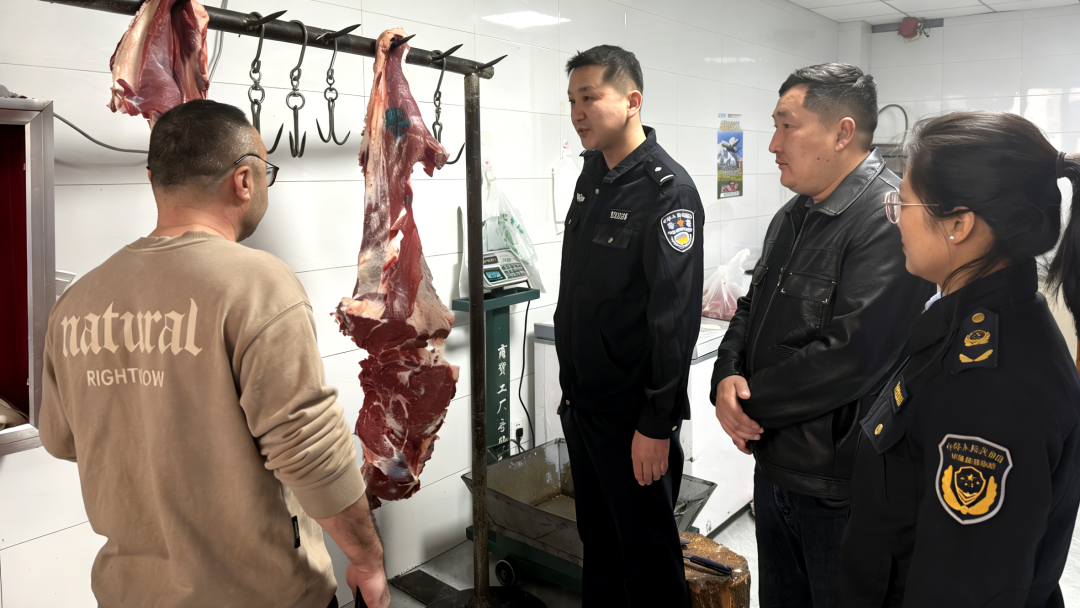 为切实保障辖区群众饮食安全,规范肉制品市场经营秩序,筑牢食品安全防线,3月24日,阿拉山口市公安局联合市市场监督管理局、市林业和草原局,开展肉制品安全全链条专项检查,以“监管+执法+防护”三位一体模式,全方位守护各族群众“舌尖上的安全”。