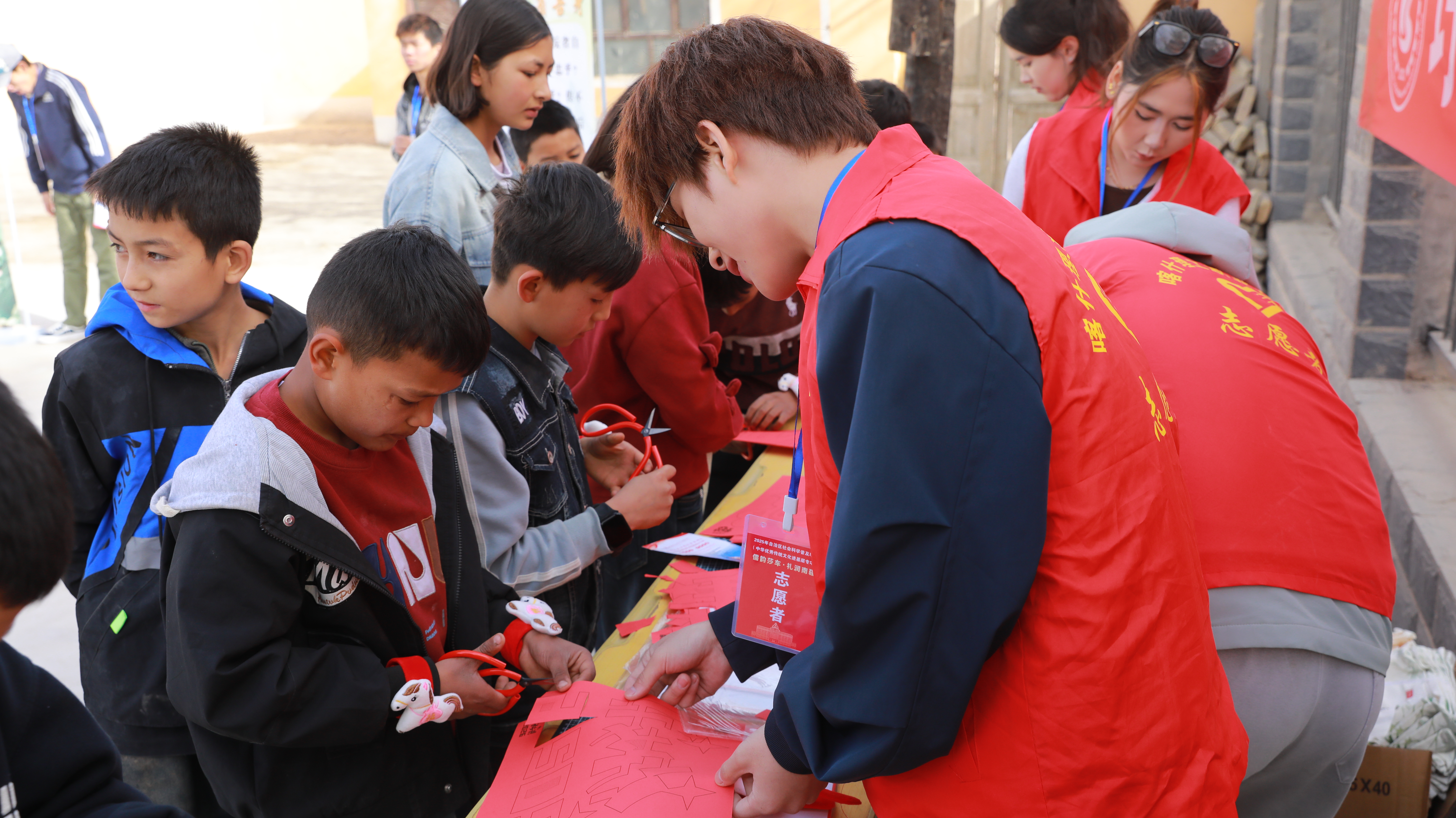 活动现场精心设置的五大互动区,让传统文化变得可触可感。知书明礼区,村民们争相体验投壶游戏,在趣味中感受古礼之韵;礼仪知识问答区,男女老少踊跃抢答,现场气氛热烈;巧手匠心区,孩子们在志愿者的指导下,剪纸、写毛笔字,沉浸式体验传统手工艺的精妙;成果展示区,一张张照片、一本本读本,记录着传统文化在诺其村留下的点滴足迹。