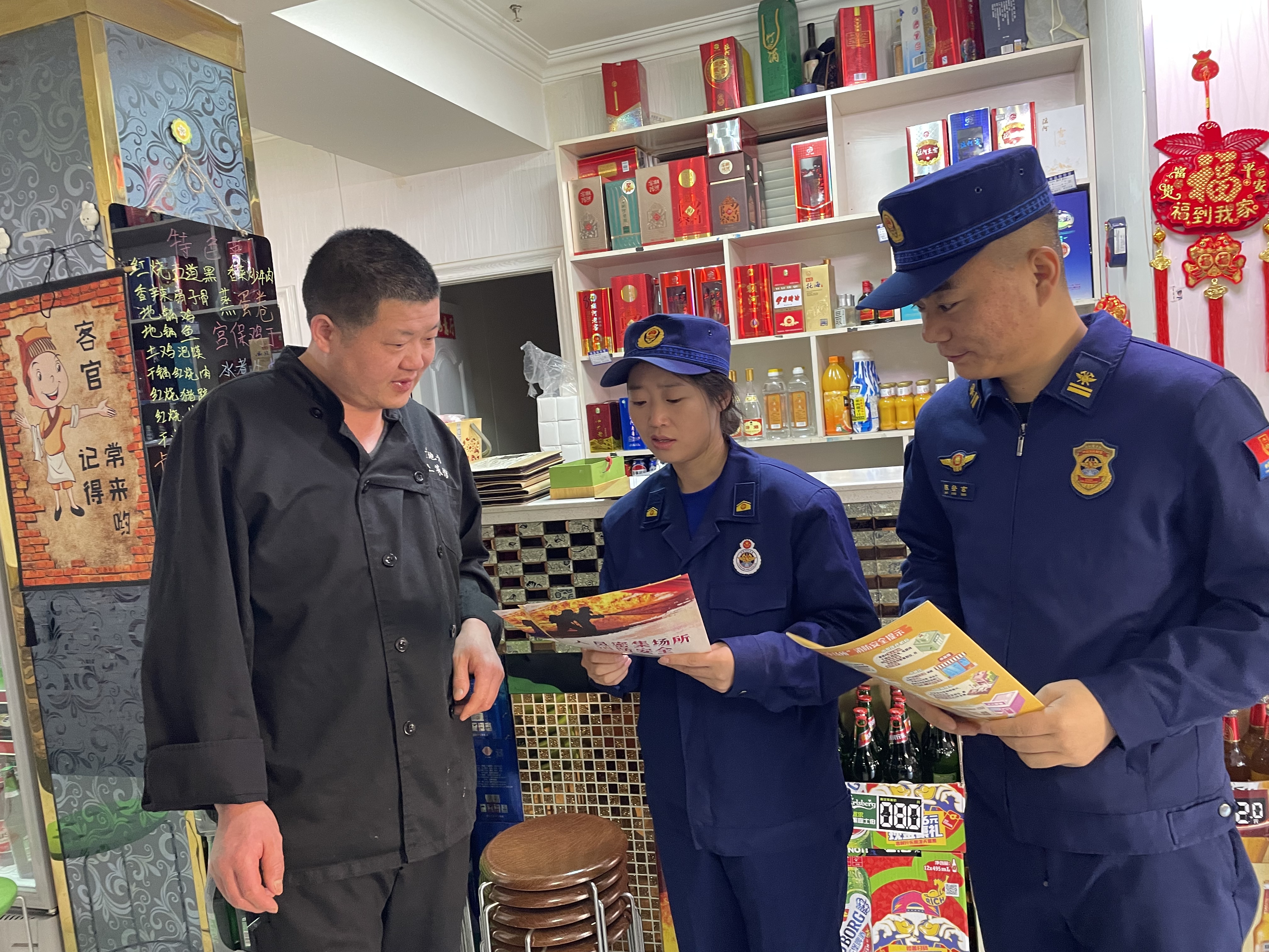 阿勒泰消防救援支队组织辖区消防宣传员走进沿街商铺面对面普及文明祭祀、安全用火用电等防火知识。(王金玉 提供)