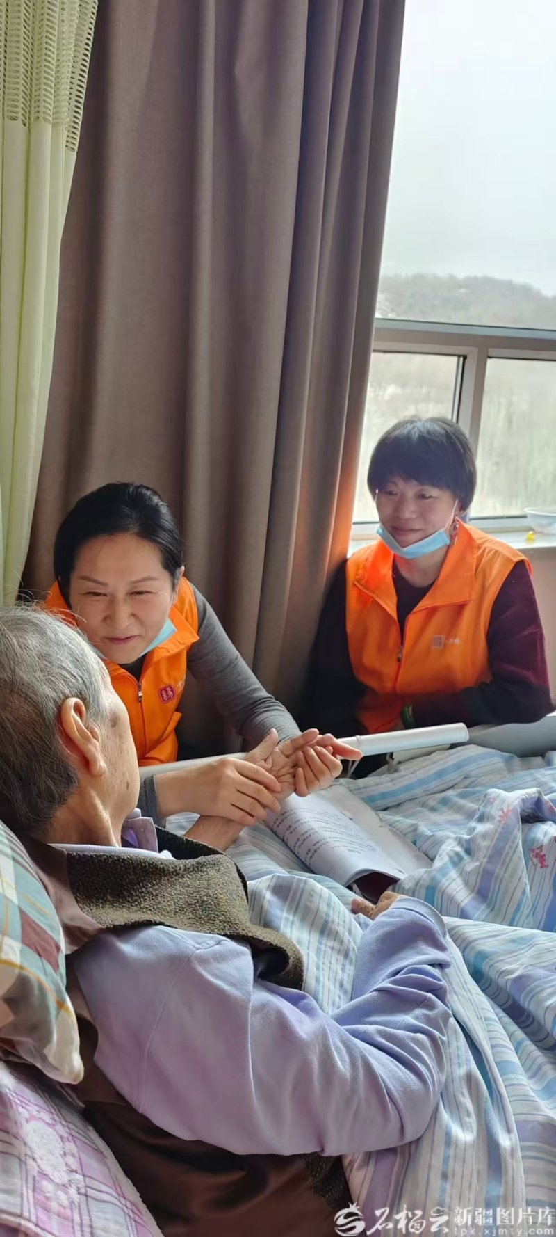 乌鲁木齐十方缘心灵呵护中心志愿者正在安宁疗护病房陪伴患者。石榴云/新疆日报记者 阿比拜摄