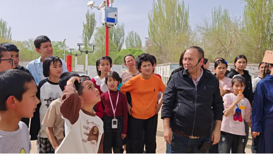 在皮山县气象局,工作人员麦麦提艾力带领亲子家庭开启了一场趣味十足的气象探秘之旅。从人工影响天气火箭架、37高炮等作业装备,到便携式六要素自动站等各类现代化气象观测仪器,再到风云气象卫星、雷达预警等专业业务平台,工作人员用通俗易懂的语言,系统讲解了气象观测、灾害预警、人工增雨防雹等专业知识,让大家直观读懂天气预报背后的科学原理,深刻认识到气象科技在防灾减灾、科技助农中的关键作用。新奇的气象设备牢牢吸引了孩子们的目光,大家纷纷表示长大后想要投身科学事业;家长们则通过讲解切实感受到科技助农的强劲力量,对气象工作者的坚守与奉献心生敬佩。