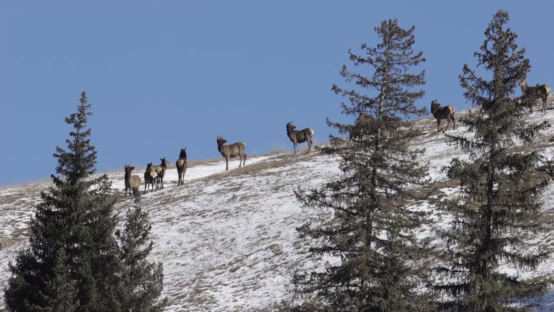 新疆昌吉:野生天山马鹿踏雪觅食 绘就生态向好画卷
