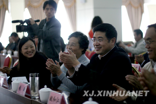 新华社新疆分社党组成员、纪检组长李秀芩(右二)出席本次论坛