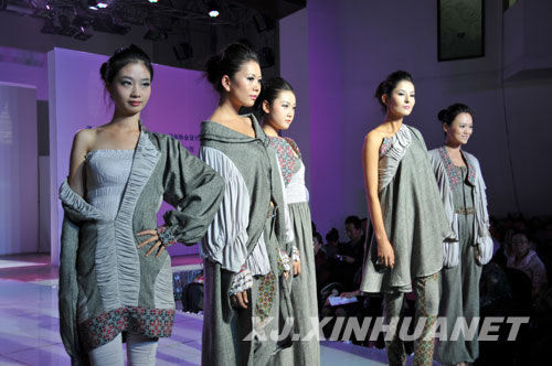作品:唯·我设计者:黄代院选用棉、麻为主天然的材料,运用平裁技术与立裁技术结合起来进行制作,东西方文化的交集融合,粗犷的拼接与柔滑抽褶,使整体效果粗犷、大气而又不失唯美高贵,高档镂空印花布制作的短风衣,夹克,改良的袷袢,连衣裙款式,在时尚中透出阵阵民族风情。