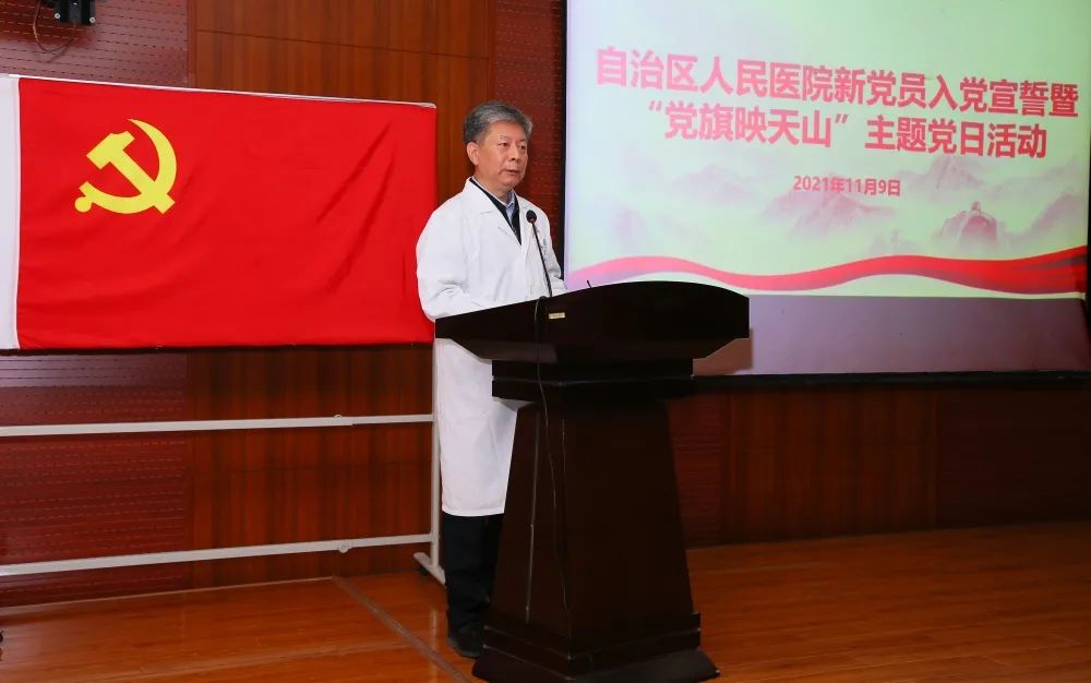 11月9日,自治区人民医院举行新党员入党宣誓暨“党旗映天山”主题党日活动,为新发展的22名预备党员举行入党宣誓仪式,老党员重温入党誓词。自治区人民医院党委副书记、副院长关爱军、党支部书记及委员代表和22名新发展的党员参加此次活动。