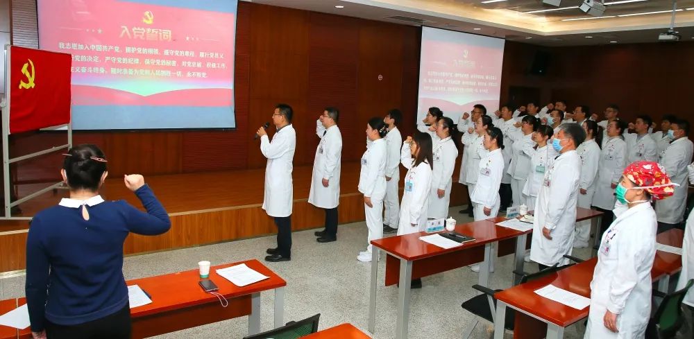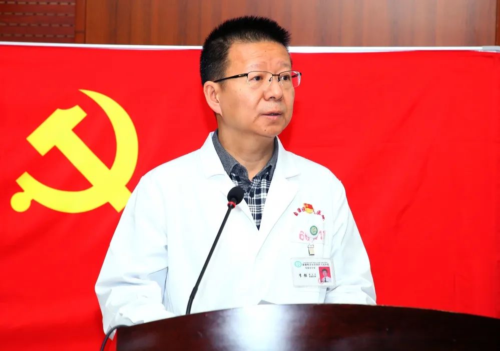 他强调,当前医院发展面临机遇,也面临挑战,不论是今天新加入党组织的党员同志,还是在座的党支部书记和支委同志们,都应着眼于党和国家卫生事业发展对党员提出的新要求,着眼于推进国家医学中心和区域医疗中心建设等国之大者,着眼于医院“1346”品质提升工程、“四个中心”建设等发展目标,争当攻坚克难、勇于担当的先锋,争当开拓进取、勇于创新的先锋,争当真抓实干、推动落实的先锋,争当无私奉献、为民服务的先锋,切实将党史学习教育过程中激发出来的信念信心、热情激情,转化为干事创业、服务群众的具体行动,主动适应医学新发展、健康服务新需求,特别是临床一线的广大党员要努力学习运用新的医学理念、新的技术和管理工具,勇攀医学高峰,竭尽所能为广大患者提供专业化、高水平的医疗服务,为推动医院高质量发展作出积极的贡献。