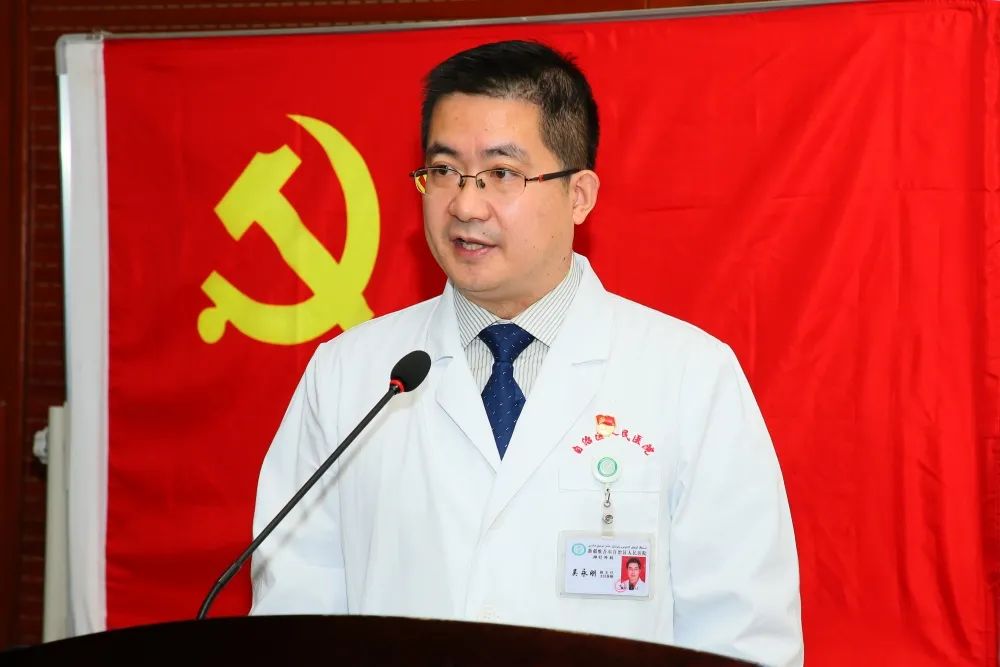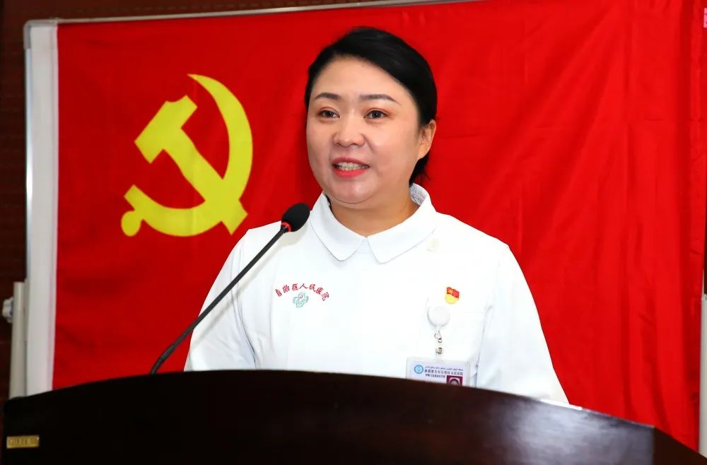 新党员吴永刚、樊荣荣两名同志分别代表新党员作了表态发言,表达了对党的深厚感情和为党的事业奋斗终身的决心。神经外科副主任吴永刚表示要学习老一辈医务工作者与党同心,与国同行,把职业当作信仰、把守护当作使命、把奉献当作情怀,全心全意护佑人民健康的精神,在工作中传承红色基因,践行初心使命,锤炼高超医术,为推动医院高质量发展贡献力量。