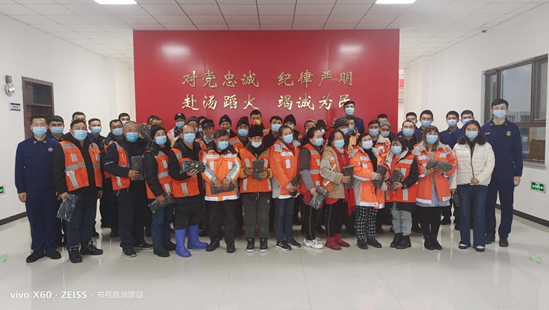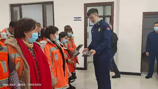 最后,消防指战员为全体环卫工人赠送了防寒保暖手套,为环卫工人在冬日工作驱除寒冷,感谢环卫工人们对辖区环境卫生工作的辛勤付出,赞扬了环卫工人吃苦耐劳,无私奉献的精神,为城市创造优美、舒适环境做出的贡献。环卫工人说“今天收到消防站送的防寒手套,心里非常高兴,对这份工作有了更大的动力,也进一步掌握了消防安全知识,学会了灭火器的使用方法,让我受益匪浅。同时,感谢消防员的关心、关爱,也祝福消防员出警平安归来。”
