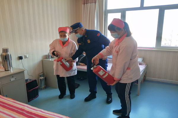 随后,宣传人员为老人们现场示范了灭火器、防护面罩、水枪等简便消防器材的使用方法。同时,针对养老机构负责人、管理人,就单位严格落实消防安全主体责任、加强防火巡查检查及日常的消防宣传教育培训等进行了重点强调,再三叮嘱养老机构负责人:“老年人在火灾面前属于弱势群体,一旦发生火灾他们是最先受害者,他们腿脚不灵活,因此做好老人的安全工作非常重要,作为院里的管理人员,一定要加强日常巡查,保证老人们的安全”。并希望养老院工作人员回到岗位后要发挥传、帮、带作用,做到消防知识人人掌握、人人重视,确保单位消防安全。