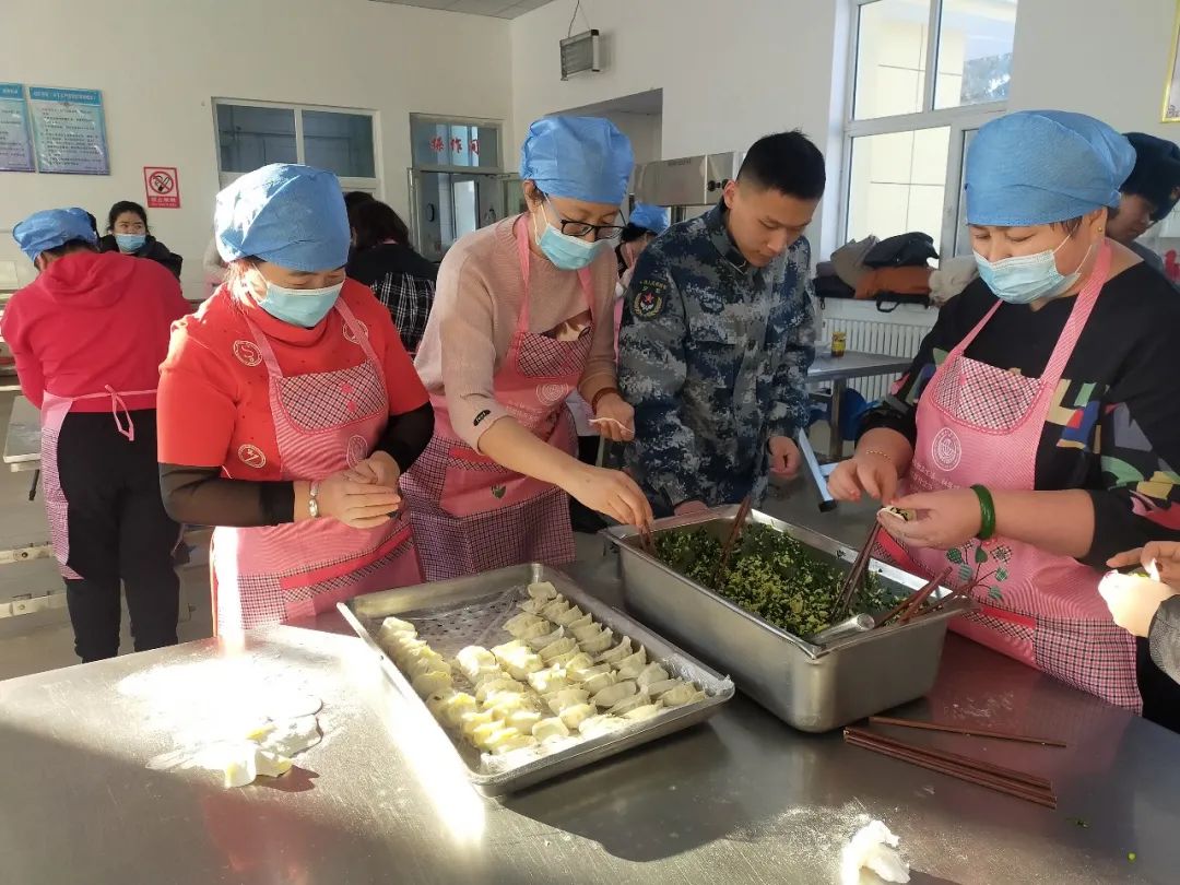 虽然室外寒气袭人,活动现场却温暖四溢、其乐融融。大家挽起袖子,和面、拌馅、擀皮……官兵与大家沉浸在欢乐的喜悦当中。现场欢声笑语不断,洋溢着欢乐祥和的气氛,进一步深化了军地的鱼水深情。