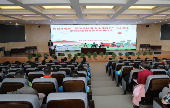 阿克苏地区消防救援支队副支队长齐军杰表示,开展此次《消防安全教育手册》捐赠仪式”,目的在于全面提升全地区学校师生的消防安全素质,增强防火意识和抗御火灾能力,确保中小学校消防安全教育做到“有教材、有师资、有课时”。