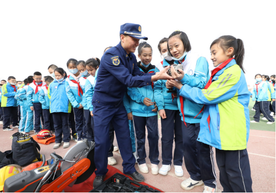 仪式过后,消防救援人员以读本为课本,为学生串讲了《消防安全教育手册》相关知识。“同学们,还记得上次在消防最后一课中,我们给大家布置的寒假作业吗?”“记得!查找家庭火灾隐患和绘制消防示意图”学生们异口同声地说。李贞雨随机抽出几名同学向大家讲述自己寒假作业中火灾隐患内容以及消防示意图主题目标。