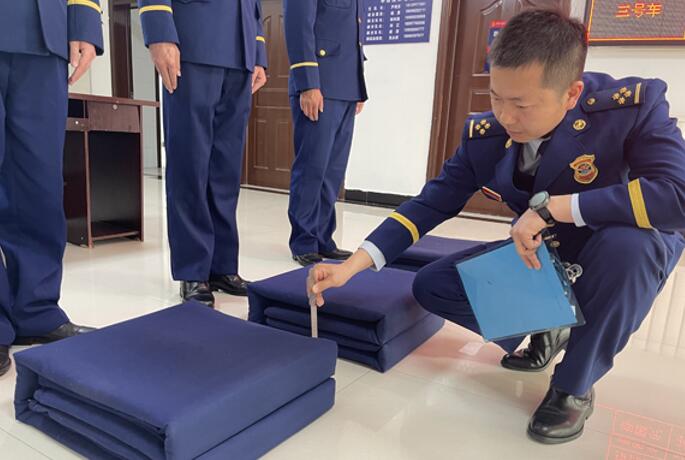 所谓“三分叠,七分修”,被子叠的好不好,关键在“修”,参赛人员争分夺秒,认真细致。通过展、折、跪、提、捏等一系列动作,15分钟后,一床床整齐方正,棱角分明的“豆腐块”呈现在眼前。20条线、12个角,线线吻合、横平竖直、角角相对、不留缝隙,他们为此下足了功夫,付出了努力,收到了成效。最终经过激烈的角逐,伊宁县武功路消防救援站三级消防长邓玉成荣获第一名,奎屯市阿克苏东路消防救援站四级指挥员李志奎荣获第二名,巩留县皮毛厂路消防救援站三级消防士张传鹏荣获第三名。比赛结束后各大队自行组织观摩学习。