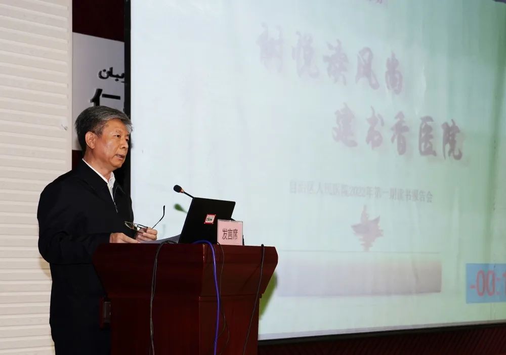 在世界读书日来临之际,新疆维吾尔自治区人民医院于4月21日举办2022年首次读书会,本次读书会由护理党支部承办。自治区人民医院党委副书记、副院长关爱军出席了活动。医院部分党总支书记、党支部书记及委员、科室护士长、行政职能部门人员参加了本次读书会。