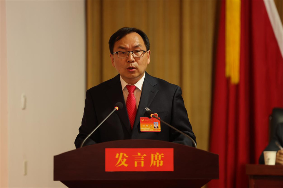 在第一次全体会议中,和田市人民政府常务副市长何学福受和田市人民政府委托,向大会作《和田市人民政府工作报告》