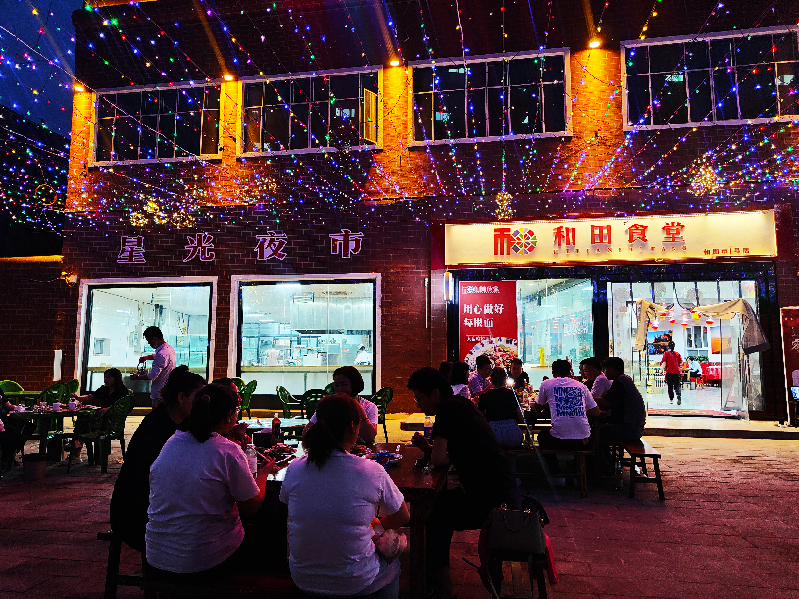 5月6日,当夜幕降临,位于北京西路的和田食堂1号店星光夜市正式开放营业,现场,唐装表演惊艳亮相、乐器演奏萨克斯、葫芦丝独奏,观众们不时跳起欢乐的麦西来甫,让现场欢呼不断。慕名而来的游客及市民,一边观赏精彩演出,一边品尝美味的海鲜烧烤,吆喝声、掌声、欢呼声相互交织,让整个星光夜市成了欢乐的海洋。
