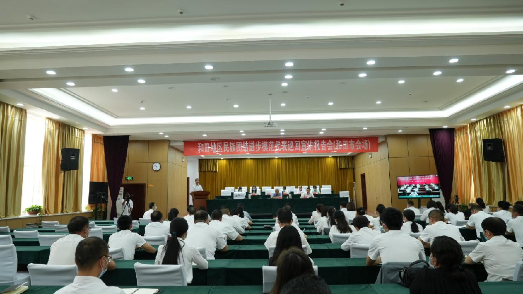 为深入开展第40个民族团结进步教育活动,广泛宣传民族团结先进典型事迹,充分发挥民族团结进步模范的示范引领作用。5月22日,和田地区统战部、和田市委统战部在和田市市委礼堂、吉亚乡相继举行和田地区民族团结进步模范代表巡回宣讲报告会。此次报告会,以视频会议形式召开,各市直单位相关负责人在主会场参加,片区、园区、设分会场参加此次报告会议。