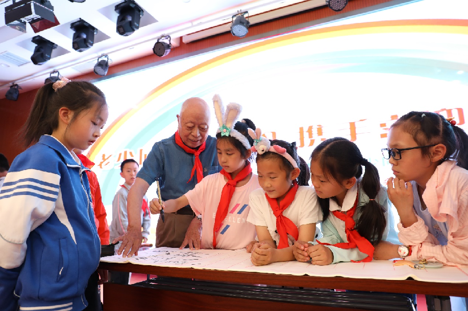在听“老石油”讲过去的故事环节,魏开谈以朴实的语言、亲身的经历、切身的感受,为大家讲述了一段段为石油无悔奉献的感人故事,深情回顾老一辈石油人以苦为荣、战天斗地,拼搏奉献、为国献油的赤诚初心,再现了一个个艰苦奋斗的动人场景,现场掌声不断;在听“小天才”诵读国学经典环节,孩子们用韵味十足的声音表现经典,为在场人员呈献了一场视听盛宴;活动中,小朋友为“老石油”佩戴红领巾,同唱少先队员队歌,让“老石油”重温儿时岁月;在石油知识问答环节,采用现场互动的方式,让孩子们了解石油的用途、如何开发石油等科普知识,不仅让孩子们在趣味盎然中体会到了科学探究的精神和方法,更增加了孩子对石油行业的亲近感与认同感;活动最后,孩子们纷纷拿起手中的画笔,一展小小艺术家的风采,绘制出了一幅幅以“喜迎二十大”为主题的书法绘画作品,用自己的方式表达着对祖国、对家乡、对油田的热爱,老领导、老专家们手把手指导,帮助小朋友们提升认识、增进理解,形成一幅老少欢愉的温馨画面。