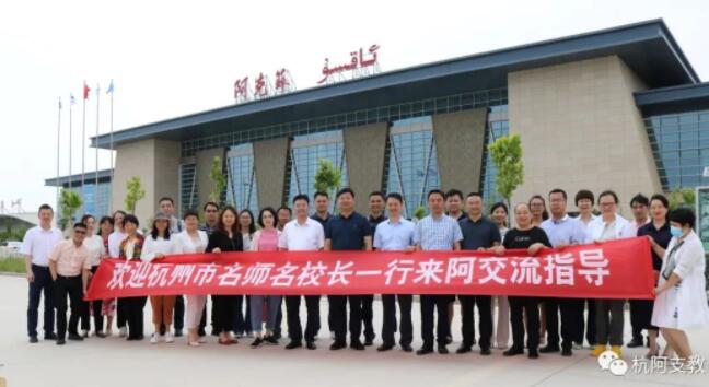 6月12日,杭州市教育局党委委员、副局长孙青峰携杭州师范大学继续教育中心顾九华副院长及杭州名师名校长一行来到阿克苏,亲切慰问第十批第二期杭州援疆教师,并开展2022杭州名师名校长阿克苏论坛。