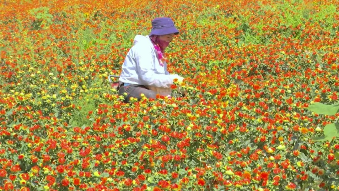 迎风盛放的红花红彤彤地铺展在田野里,映衬出村民们的“红火”日子。红花种植地里,村民们正忙着采花,脸上洋溢着幸福的喜悦。红艳艳的花海呈现出一片生机勃勃的景象,花团锦簇的样子也为田野里增添了一道靓丽的风景线。因为采摘红花需要大量的人工,发展红花种植的同时也为附近的村民就近就业提供了岗位。