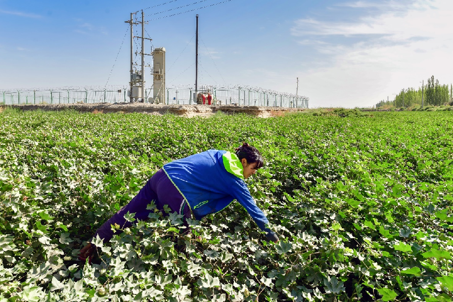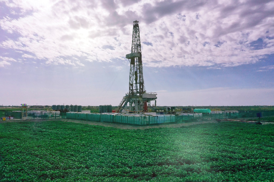 图为被棉田包围的采油三厂TP1105X钻井施工现场